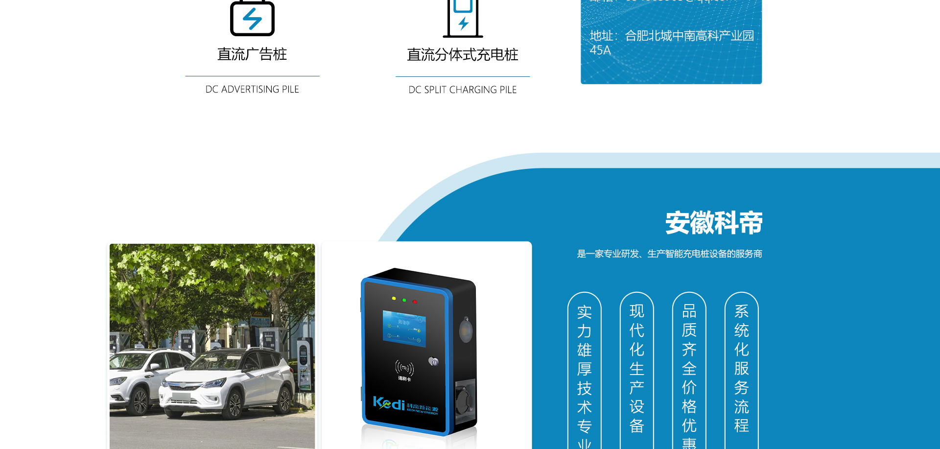 關(guān)于我們安徽科帝新能源科技有限公司坐落于安徽省會(huì)-合肥,是一家研發(fā)、生產(chǎn)智能充電樁設(shè)備,汽車充電站后臺(tái)監(jiān)控管理系統(tǒng)和生產(chǎn)高壓開關(guān)設(shè)備的企業(yè).由專門的研發(fā)團(tuán)隊(duì)、管理團(tuán)隊(duì)按照現(xiàn)代化企業(yè)制度規(guī)范設(shè)立的有限責(zé)任公司。致力于為能源智能、安全的應(yīng)用和節(jié)能減排提供整體的技術(shù)與產(chǎn)品解決方案。科帝集研發(fā)、設(shè)計(jì)、生產(chǎn)、銷售以及服務(wù)于一體,在電動(dòng)汽車充電方案,充電設(shè)施建設(shè)和城市配電方面擁有廣泛的技術(shù)研究及經(jīng)驗(yàn)積累,為客戶提供安全、智能的充電設(shè)備及充電運(yùn)營(yíng)站建設(shè)一體化解決方案。并堅(jiān)持以人為本、質(zhì)量為先、顧客至上、不斷創(chuàng)新”的企業(yè)理念,為能源行業(yè)的發(fā)展、節(jié)能減排做出重大的貢獻(xiàn)。公司擁有豐富的產(chǎn)品種類,目前科帝已研發(fā)生產(chǎn)了三十多種產(chǎn)品,充電設(shè)備有直流一體式充電樁、直流分體式充電樁、直流廣告樁、交流廣告樁、廣告一體樁、壁掛交直流樁;等多種充電設(shè)備;每一款產(chǎn)品都是精心打造,力求為客戶提供優(yōu)越的用戶體驗(yàn)。展望未來科帝將通過持續(xù)的自...